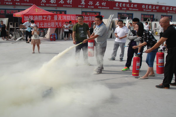 為了進一步強化建材市場員工及商戶的消防安全意識,提高火災(zāi)防控能力,建材市場于2016年7月6日上午9時,在石材區(qū)小廣場,組織開展了一次滅火實戰(zhàn)演練。