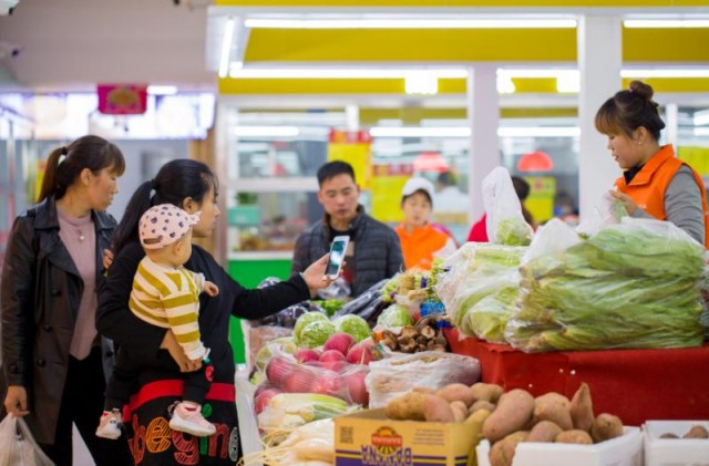 10月18日,呼和浩特市市民正在選購新鮮果蔬。10月16日,呼和浩特市玉泉區(qū)通達(dá)綜合農(nóng)貿(mào)便民市場開業(yè),該市場經(jīng)營面積近3000平方米,設(shè)有蔬菜區(qū)、牛羊肉區(qū)、調(diào)料區(qū)、主食區(qū)、水果區(qū)、水產(chǎn)區(qū)、面點區(qū)等,還專門設(shè)有快餐區(qū),共127個攤位、70家商戶。市場采用超市的經(jīng)營方式,為老百姓打造安全舒適、環(huán)境優(yōu)美的購物環(huán)境。