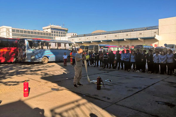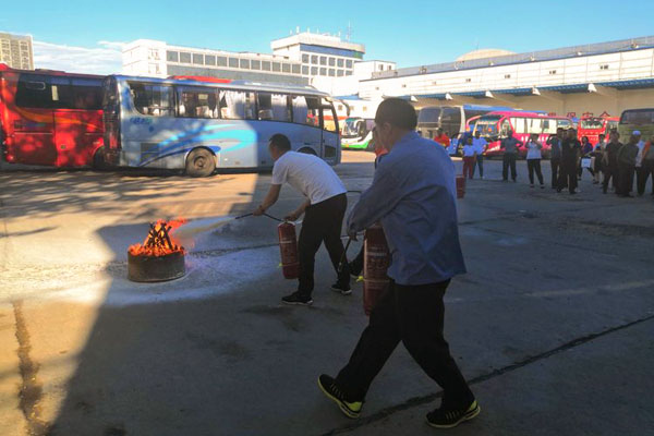 駐站交警、駐站運管相關領導親臨現(xiàn)場,參與消防演練