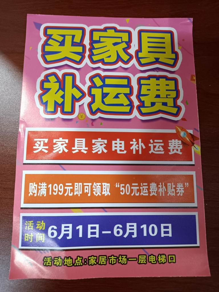 南站家居市場(chǎng)端午節(jié)促銷(xiāo)活動(dòng),從6日1日至10日,本著回饋消費(fèi)者,提升商戶銷(xiāo)售量,烘托購(gòu)物氣氛,買(mǎi)家具補(bǔ)運(yùn)費(fèi),來(lái)吸引消費(fèi)者,家具市場(chǎng)從6月11日開(kāi)始至13日,進(jìn)行補(bǔ)運(yùn)費(fèi)領(lǐng)現(xiàn)金活動(dòng),商戶,消費(fèi)者對(duì)本次促銷(xiāo)形式滿意,本次活動(dòng)即增加了商戶銷(xiāo)售額,又提升了市場(chǎng)知名度。