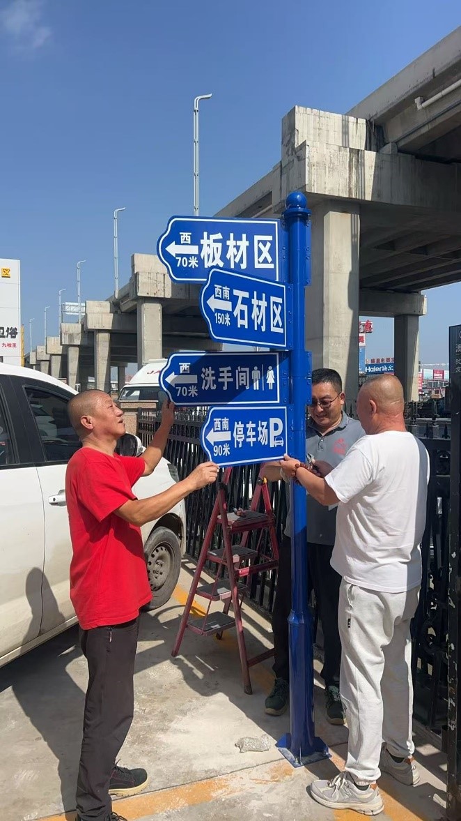 作為本地知名的綜合性建材交易平臺,通達(dá)建材市場涵蓋陶瓷、門窗、板材、五金等多個經(jīng)營品類,商戶數(shù)量眾多、經(jīng)營區(qū)域劃分細(xì)致。此前,部分新老客戶因?qū)κ袌霾季植皇煜ぃ加姓业旰臅r(shí)較長的情況,一定程度上影響了商戶的接待效率。為切實(shí)解決這一問題,市場管理方經(jīng)過前期實(shí)地調(diào)研,充分征求商戶意見,最終確定了指示牌的安裝方案。