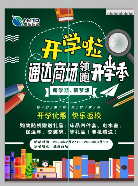 為迎接中小學(xué)學(xué)生返校,通達(dá)商場(chǎng)此次營(yíng)銷優(yōu)惠活動(dòng),給學(xué)生提供最物美價(jià)廉的各類學(xué)習(xí)用品,讓同學(xué)們有一個(gè)愉快的新學(xué)期。